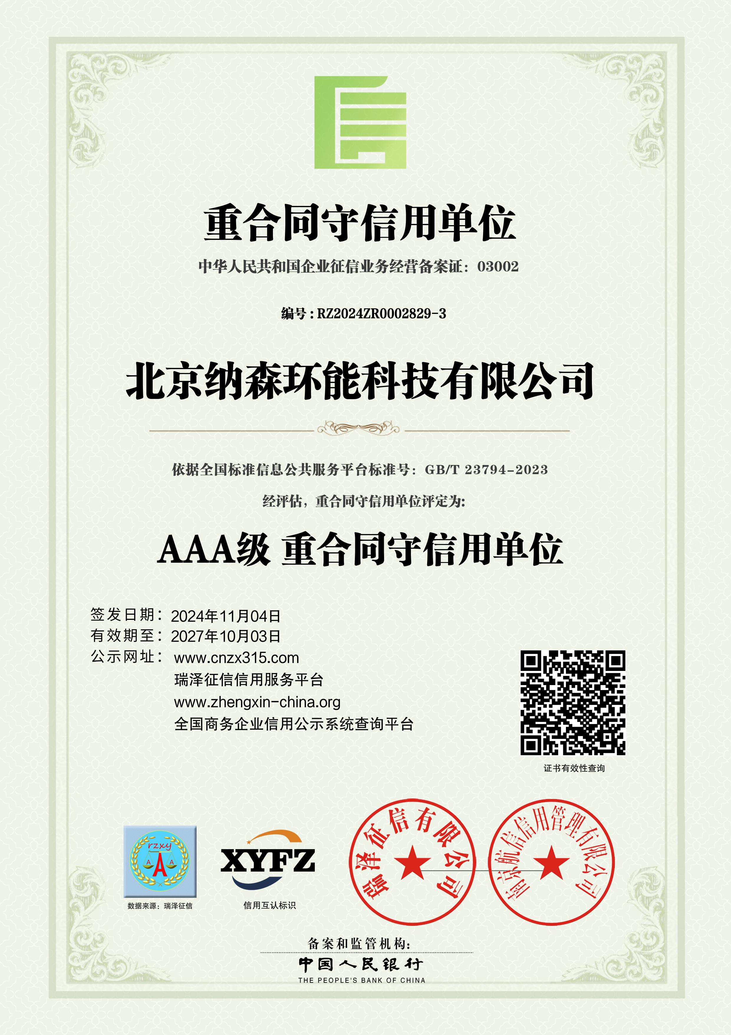 北京纳森环能科技有限公司是一家集环保工程科研、设计、施工、环保设备生产制造于一体的高新技术企业,公司原址座落于北京市经济技术开发区,地理位置优越交通便捷,环境优美,是国家工信部直属中国环保机械行业协会单位会员。本公司拥有较强的设计服务与制作能力。公司拥有各种专业的生产设备,完善的IS014001环保管理体系,IS09001质量保证体系、ISO45001职业健康安全管理体系认证,并获得多项国家授权专利,集科研设计制造、销售、安装、售后服务为一体,坚持以持续技术创新不断为客户节省成本,降低运行能耗...